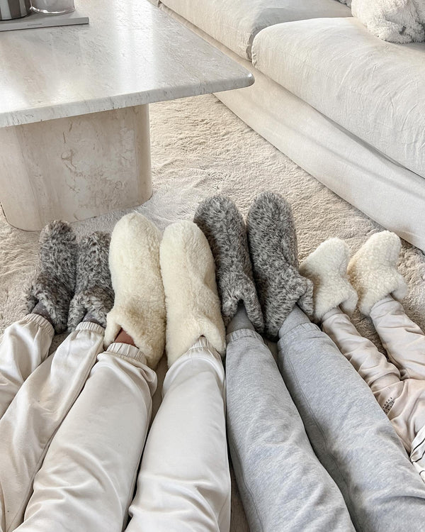 Bei The Cozy Sheep haben wir nicht nur dafür gesorgt, dass du unsere kuscheligen Hausschuhe in verschiedenen Größen und Modellen bestellen kannst. Du hast auch die Möglichkeit, aus zeitlosen Farben wie Dunkelgrau, Hellgrau und Weiß zu wählen.