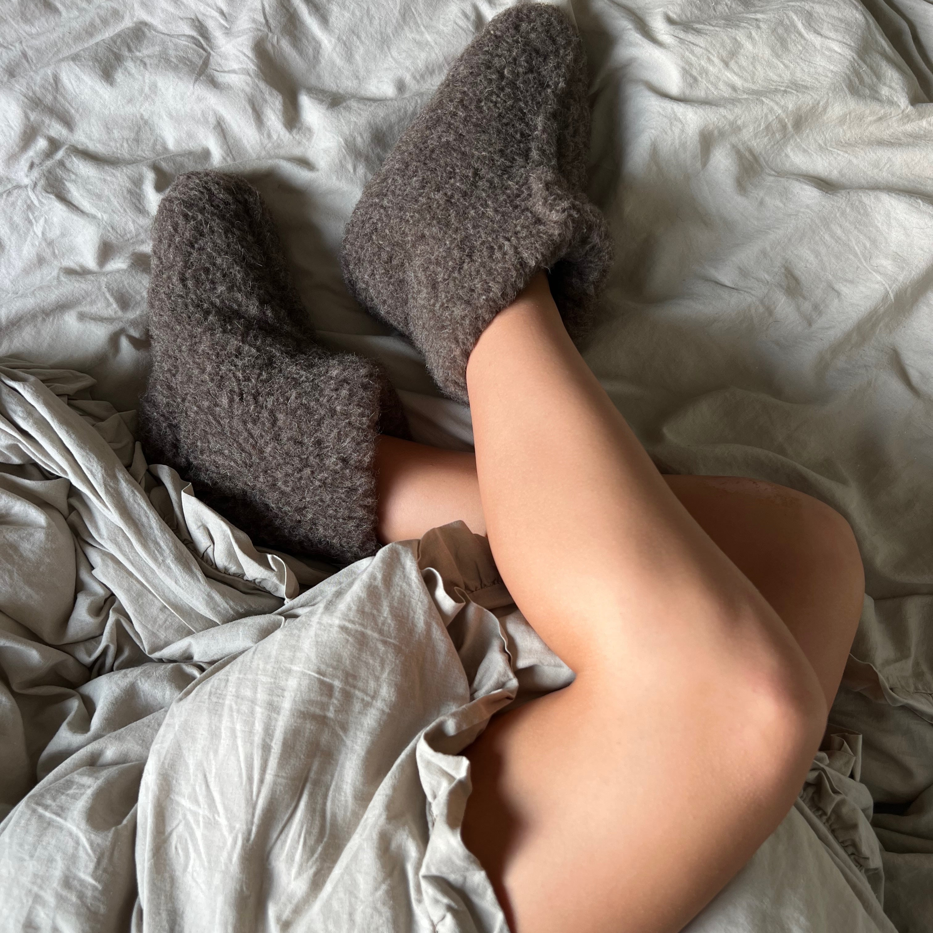 Durchdachte Geschenke wie Hausschuhe aus Wolle oder Wollsocken, die eine warme Überraschung.